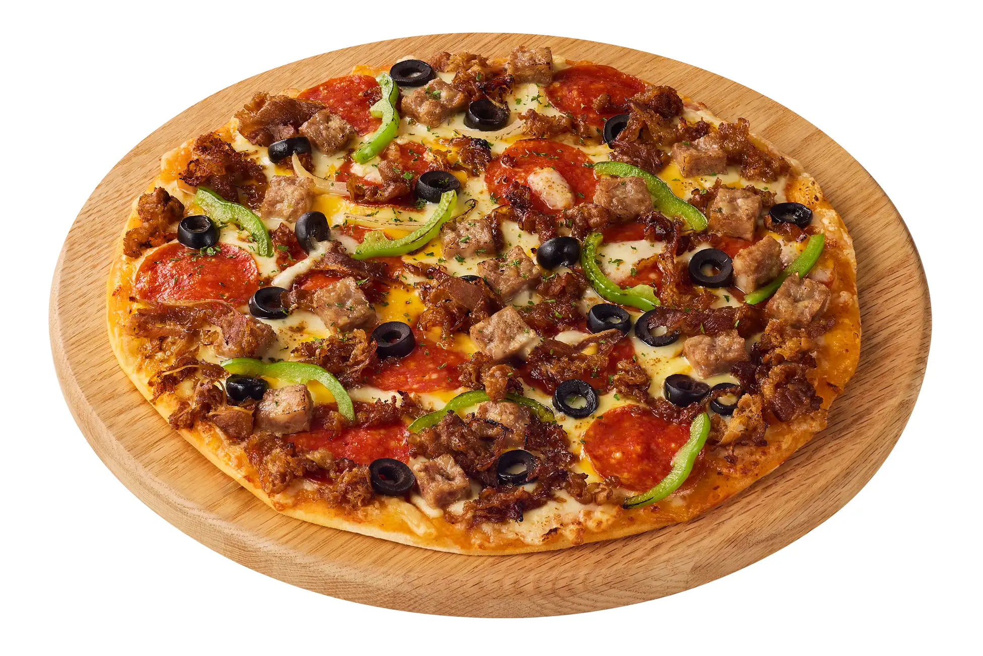 ミートと野菜をふんだんに使用し、食材の旨みを最大限に引き出した贅沢な一枚。食べ応え抜群で、多彩な味わいを一度に楽しめるボリューム満点のピザです。